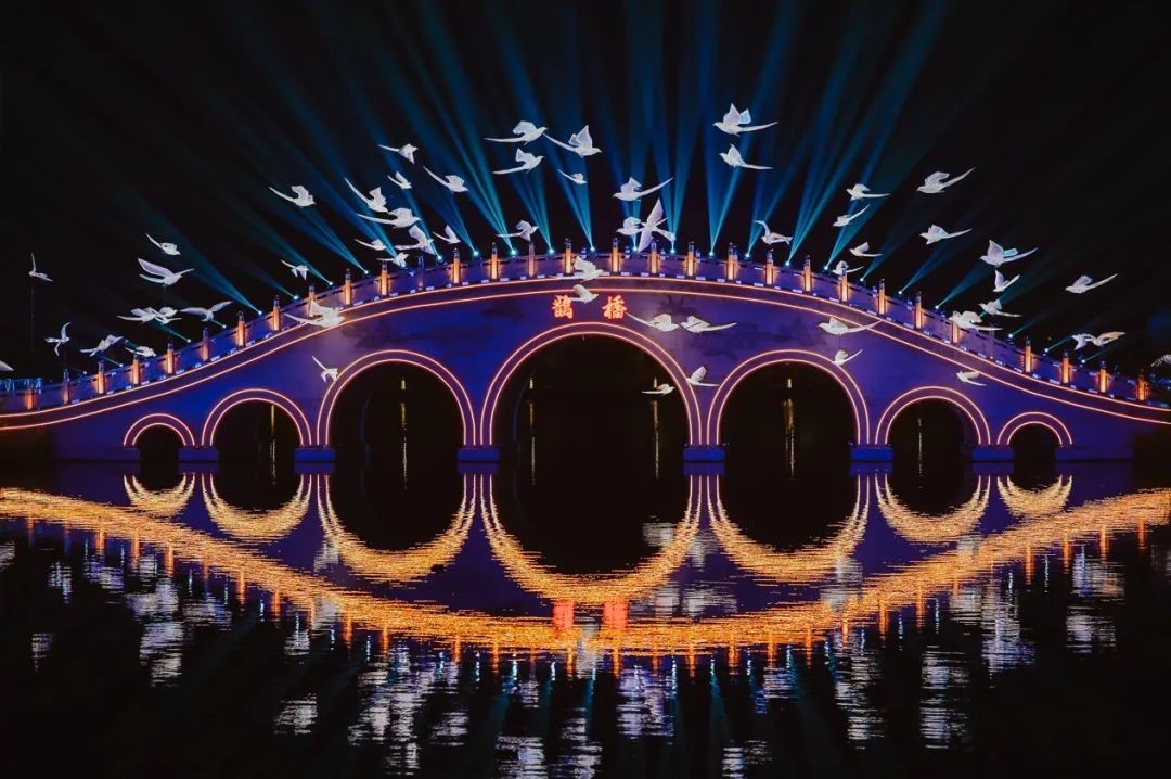 ? ? ? ? 作為七夕文化的重要起源地,昆明池和仙女湖多次獲得央視&紅豆七夕特別節(jié)目的垂青?!耙黄ッ鞒?,千秋織女名”,漢武帝在昆明池兩岸豎起的織女石像和牛郎石像,令昆明池以“人間天河”聞名于世。而一段美麗浪漫的仙俗奇緣傳說則令仙女湖的“仙”文化深入人心。不僅如此,兩地受到良好保護的生態(tài)環(huán)境,秀美的綠水青山,優(yōu)越的自然風光,也為七夕晚會的舉辦提供了得天得厚的條件。