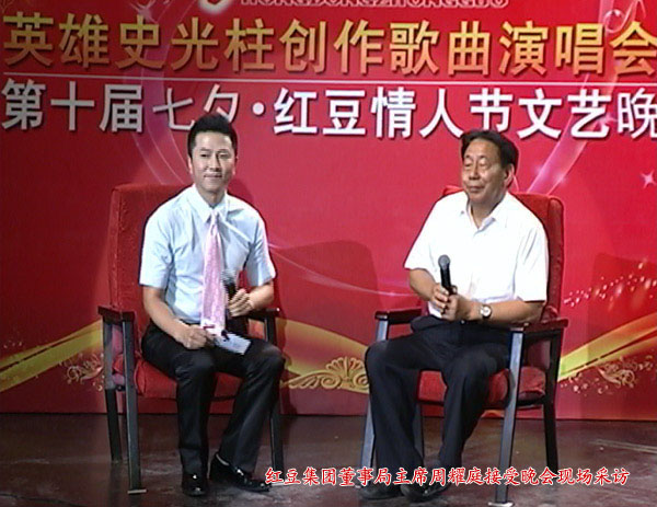 那么是誰將“紅豆”的相思內(nèi)涵進一步延伸,從思念情人、思念親人升華到了思念故鄉(xiāng)、思念祖國,并升華為民族的大愛!“這些都與一個人有關(guān),而且為了弘揚七夕這個傳統(tǒng)節(jié)日,他在2001年就率領(lǐng)他的企業(yè)在全國第一個舉起弘揚七夕情人節(jié)的大旗,十載耕耘,十年堅守,從最初的‘曲高和寡’,到應(yīng)者云集,再到如今的全民節(jié)日,他用行動詮釋了現(xiàn)代版愚公移山的故事?!敝鞒秩藥еF(xiàn)場觀眾們疑惑的目光,走下舞臺來到紅豆集團董事局主席周耀庭身邊,“他就是周耀庭先生!”主持人的話音剛落,觀眾們連連鼓掌。在談到舉辦七夕紅豆·相思節(jié)的初衷時,周耀庭回答說:“我們之所以舉辦這個活動是想告訴人們,我們有自己民族的情人節(jié),這個節(jié)日已經(jīng)有2780年了,是世界上最早的愛情節(jié)日。通過10年的努力,值得我們欣慰的是,中華兒女都開始過七夕節(jié),并且七夕節(jié)在今年被中宣部、中央文明辦等七部委列為‘我們的節(jié)日’,七夕的復(fù)蘇就是對我們十年付出,十年堅守的最大肯定。我們計劃通過三個10年,第一個十年,紅動中國,第二個十年走向世界,第三個十年,紅動全球,最多五個十年一定能實現(xiàn)?!彼幕卮鹪俅我l(fā)全場熱烈的掌聲。