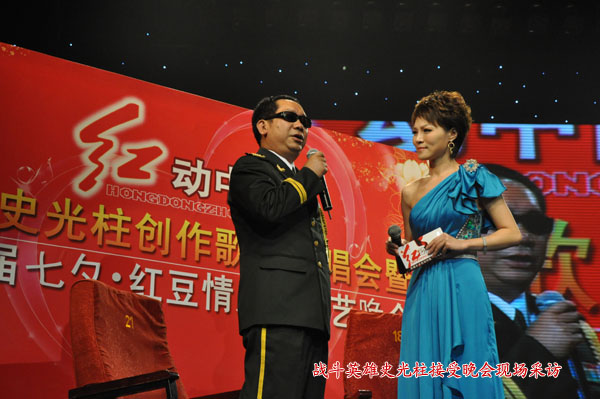 “江中有你的小溪,江中有我的河,江中有你人生的一段跋涉,在那激情演繹的歲月,你像陽光走進天地,走進我生活……”歌曲《江戀》的旋律剛一響起,整個劇場內(nèi)爆發(fā)出雷鳴般的掌聲。“這首歌是史光柱為歌頌愛情,為我們紅豆集團寫的歌。”李先生一邊鼓掌,一邊說道。如果沒有1984年的那場戰(zhàn)爭,這個世界將會少一位英雄;如果沒有那場戰(zhàn)爭,這個世界就會多一雙明亮的眼睛。史光柱,這個響亮的名字,在上個世紀八十年代感動和影響了整整一代人。戰(zhàn)傷后,他從雙目失明的陰影中走出,拿起筆桿,在文藝的陣地繼續(xù)攻關(guān)拔礙、沖鋒陷陣,譜寫了一首首紅色經(jīng)典和一個個史光柱傳奇。據(jù)悉,當天整場晚會共16首歌曲全部是由史光柱創(chuàng)作而成,其中《江戀》、《紅豆》和《青春木棉》三首歌曲是他專門為紅豆集團創(chuàng)作的。“史政委,這么多年來,究竟是什么力量讓您始終飽含創(chuàng)作的激情?”晚會上,主持人的問題代表了所有人心中的疑問?!白鎳?、大愛、崇高的理想一直都在我心中,是它們激勵著我克服了重重困難,我想說的是,崇高讓我高尚,崇高讓我內(nèi)心充滿陽光?!笔饭庵幕卮鹨矛F(xiàn)場觀眾連連贊嘆,將晚會推向了一個小高潮。男生獨唱、女生獨唱、男女對唱、歌伴舞,一首首紅色經(jīng)典不僅激發(fā)起觀眾們對于愛情的美好聯(lián)想,而且引起了他們對故鄉(xiāng)、祖國的思念。