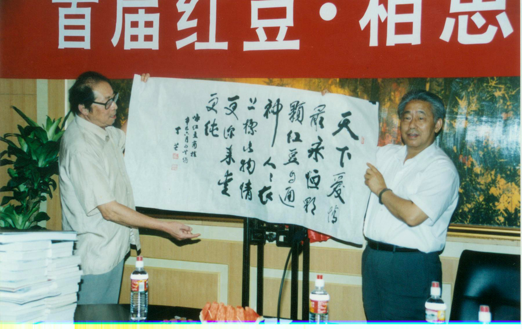 ? ? ? ?“筆會(huì)”是首屆七夕紅豆·相思節(jié)的主題詞。2001年6月27日至28日,由江蘇省作家協(xié)會(huì)和紅豆集團(tuán)共同籌辦的首屆紅豆· 相思節(jié)筆會(huì)在美麗的太湖之濱——無(wú)錫市舉行,來(lái)自北京、河北、江蘇等地共30余人參加的此次筆會(huì),由此拉開(kāi)了首屆七夕紅豆·相思節(jié)序幕。