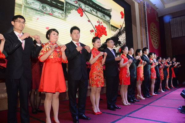 在紅豆,有著無數(shù)個這樣的故事等待我們挖掘。這些紅豆人因為紅豆情文化而扎根企業(yè),從而也吸引更多的人選擇在紅豆扎根。紅豆是有形的情,在紅豆,每個員工都會感受到家庭溫暖。此次紅豆樹下的婚禮,紅豆為紅豆員工打造美輪美奐的婚禮,精心安排各種獨(dú)具紅豆特色的環(huán)節(jié)。鵲橋相會、恩愛宣誓、紅豆樹下鎖同心、新人共放荷花燈,紅豆情緣等等系列戶外儀式,演繹著新人相識相戀相愛的浪漫故事。紅豆集團(tuán)還為新人們送上紅豆緣定制首飾、定制旗袍、紅豆形象男裝等具有濃厚中國風(fēng)的新婚賀禮,共邀新人的親朋好友參加這場最浪漫的新中式集體婚禮,以紅豆之名見證最美的愛情。