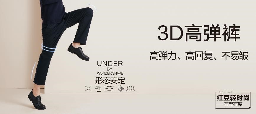 不知道該怎么選擇褲子?不知道自己適合什么版型?紅豆男裝的這款褲子可以為你解決以上問題。3D高彈褲是紅豆男裝的經(jīng)典熱賣款,高彈力無(wú)束縛的舒適穿著體驗(yàn),讓這款褲子成為紅豆男裝門店的明星產(chǎn)品。在深受歡迎的同時(shí),紅豆男裝精益求精,在第二代的基礎(chǔ)上進(jìn)行改良升級(jí),即將推出第三代3D高彈褲。高彈力、高回復(fù)、不易皺,第三代3D高彈褲經(jīng)過(guò)層層打磨、細(xì)節(jié)推敲、不斷優(yōu)化,只為打造經(jīng)典,彰顯舒適與品質(zhì)。