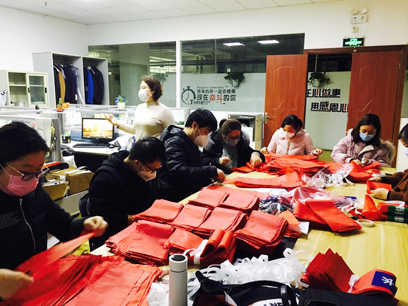 為了節(jié)省時(shí)間,顧彩紅安排專職人員等候在印刷廠,隨時(shí)做完,隨時(shí)取貨,并立即送回工廠,由廠里員工加緊貼制,“為了加快進(jìn)度,公司很多管理人員和業(yè)務(wù)員都齊齊上陣,連夜趕制,當(dāng)時(shí)大家心中就只有一個(gè)念頭,一定爭分奪秒把東西做出來!”說起當(dāng)晚的場景,顧彩紅依然心潮澎湃。