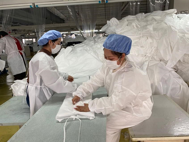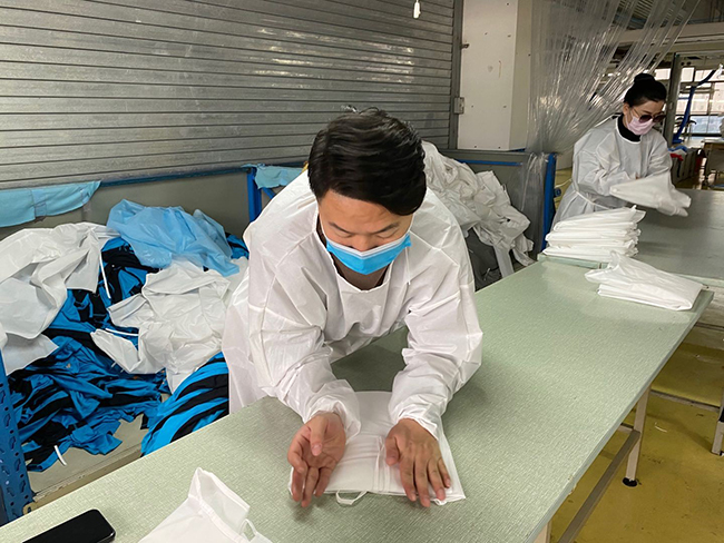 2月24日,紅豆藝術(shù)團團員在團長張波帶領(lǐng)下,奔赴生產(chǎn)一線,爭當一名普通志愿者,投身于紅豆防護服的生產(chǎn)包裝工作中。他們一邊親臨工廠體驗戰(zhàn)“疫”生活,一邊現(xiàn)場采訪奮戰(zhàn)在生產(chǎn)一線的優(yōu)秀黨員干部和先進員工,收集紅豆戰(zhàn)“疫”的最新素材,為創(chuàng)作新作品鋪陳。