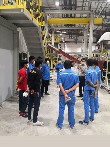 在國內疫情嚴重的當下,工廠內沒有國內的熟練工,朱崇留就對泰國員工進行培訓,讓他們盡快成為能上前線的“戰(zhàn)士”。與此同時,他并沒有忽視國內半鋼工廠的工作任務。忙完泰國工廠的事后,又加班加點遠程處理國內車間的工作,壓延的問題點分析,設備的安裝調試,內襯層壓延機調試等,事無巨細,親力親為,用實際行動發(fā)揮著共產黨員的模范帶頭作用。