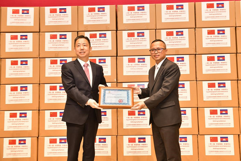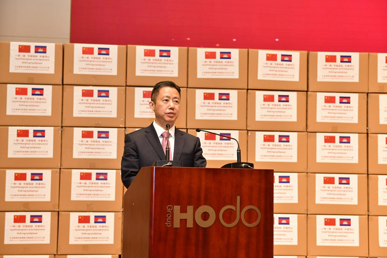 周海江在儀式上表示,在習(xí)近平總書記的親自指揮、親自部署下,我們舉國上下同心抗疫,經(jīng)過60多天的艱苦奮斗取得階段性勝利。而在中國抗疫斗爭初期最艱難時(shí)刻,洪森首相不顧危險(xiǎn),親赴北京,雪中送炭,支持中國抗疫,體現(xiàn)了危難之際中柬兩國的深厚兄弟情誼。多年來,在洪森首相的英明領(lǐng)導(dǎo)下,柬埔寨經(jīng)濟(jì)發(fā)展迅猛,現(xiàn)在柬埔寨疫情防控進(jìn)入攻堅(jiān)期,作為在柬投資的中國龍頭企業(yè),紅豆集團(tuán)用實(shí)際行動(dòng)誠摯表達(dá)中國人民對(duì)洪森首相英明領(lǐng)導(dǎo)的一份敬意。