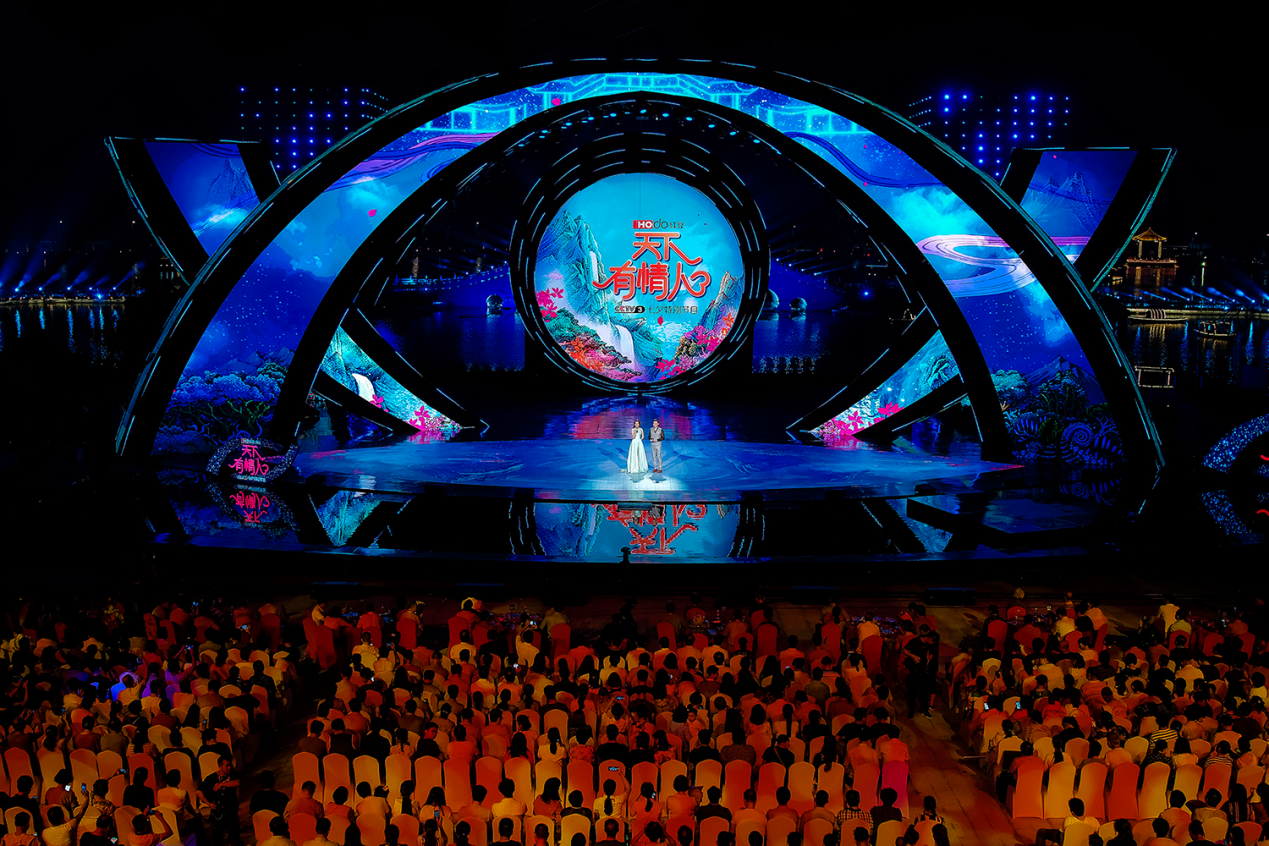 2017年,《天下有情人》七夕晚會(huì)首次從室內(nèi)來到戶外,舞臺設(shè)在了江西新余仙女湖,這里是東晉古籍《搜神記》中“七仙女下凡”傳說和“中國七夕情人節(jié)”的發(fā)源地。在那場堪稱視覺盛宴的晚會(huì)上,大型實(shí)景舞臺,加上酷炫的現(xiàn)代舞臺技術(shù),形成了亦真亦幻的仙境效果,讓人為之驚嘆,晚會(huì)極具古典氣息的舞美設(shè)計(jì)與豐富的舞臺視覺效果,真正呈現(xiàn)出了一幅極具中國傳統(tǒng)唯美浪漫情懷的畫卷。