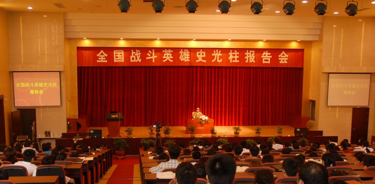 全國(guó)戰(zhàn)斗英雄史光柱在紅豆集團(tuán)作報(bào)告會(huì)