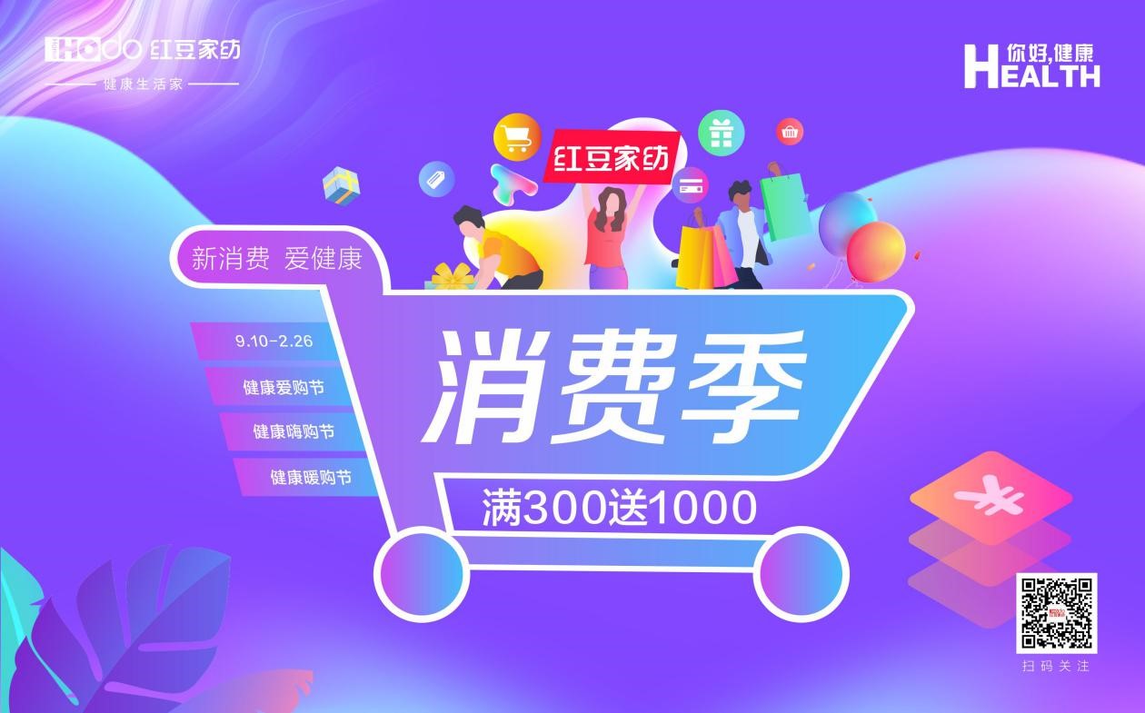 金秋如錦,今年適逢國(guó)慶、中秋“雙節(jié)合一”。在“雙節(jié)”到來(lái)之際,紅豆家紡為進(jìn)一步激活大眾健康睡眠消費(fèi)潛力,于2020年9月10日舉辦 “新消費(fèi).愛(ài)健康——紅豆家紡消費(fèi)季”主題系列活動(dòng),讓用戶在“紅豆家紡消費(fèi)季”多買多送,一次買個(gè)夠,活動(dòng)期間推出滿300元送1000元券包,以前端企業(yè)讓利,后端鏈接用戶,為用戶提供有價(jià)值的消費(fèi)福利,持續(xù)為用戶輸出健康睡眠品牌理念。