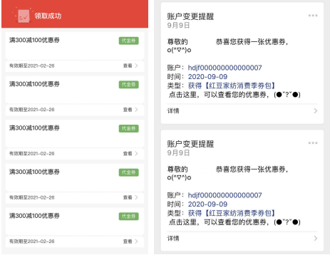 紅豆家紡?fù)ㄟ^(guò)消費(fèi)季的前端讓利,鏈接更多用戶的后端消費(fèi),促活并綁定會(huì)員,繼續(xù)為用戶創(chuàng)造后端價(jià)值,在后端需求中通過(guò)消費(fèi)券包與用戶建立多次鏈接,增強(qiáng)會(huì)員黏性,持續(xù)輸出品牌健康價(jià)值。