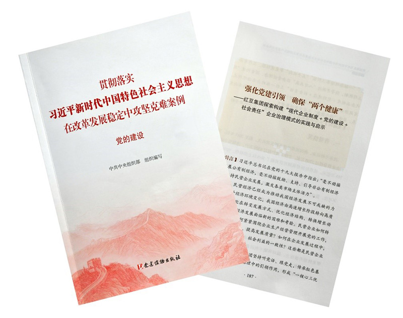 據(jù)新華社北京7月22日報道,中央組織部組織編選的“貫徹落實習(xí)近平新時代中國特色社會主義思想、在改革發(fā)展穩(wěn)定中攻堅克難案例”叢書,近日由黨建讀物出版社出版發(fā)行。紅豆集團的黨建工作經(jīng)驗光榮入選其中的《黨的建設(shè)》本,該書共選30個單位的案例,紅豆集團是唯一的民營企業(yè)。